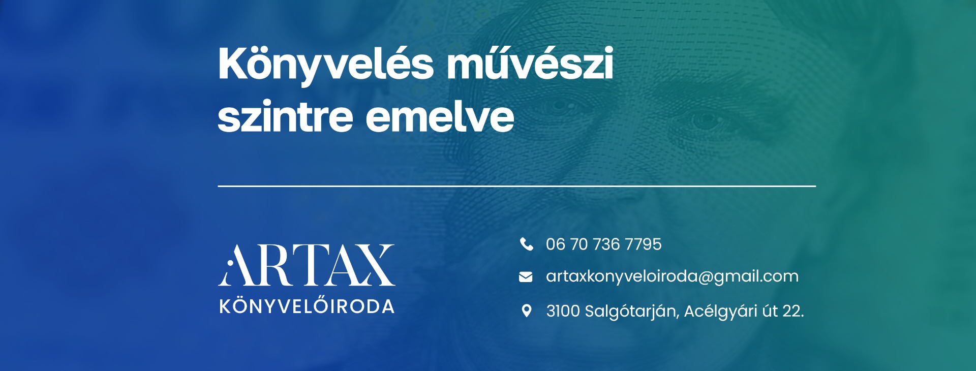 Az ARTAX Könyvelőiroda Salgótarjánban székelő iroda, amely magas színvonalú és megbízható könyvelési és bérszámfejtési szolgáltatásokat nyújt kis- és középvállalkozásoknak, valamint egyéni vállalkozóknak egyaránt.
